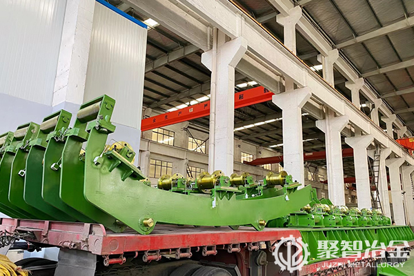 弧形小方坯连铸机的铸坯导向及二冷装置,是铸坯出结晶器继续散热凝固的区域,由于铸坯出结晶器后坯壳还比较薄弱,需要给以适当的均匀的冷却,使铸坯在正确的导向和冷却下,保持绪晶器内形成的正确形状。